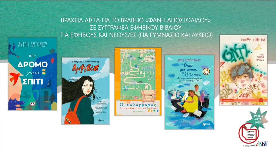 Βραχεία Λίστα των Βραβείων του Κύκλου Ελληνικού Παιδικού Βιβλίου 2025 για το βραβείο «Φανή Αποστολίδου» σε συγγραφέα εφηβικού βιβλίου για εφήβους και νέους/ες (για Γυμνάσιο και Λύκειο)-17/3/25
