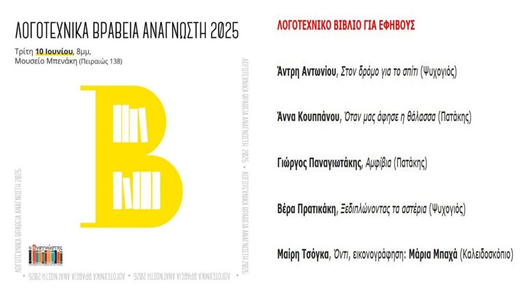 Μικρές Λίστες των Λογοτεχνικών Βραβείων του Αναγνώστη 8/5/25-Λογοτεχνικό Βιβλίο για Εφήβους